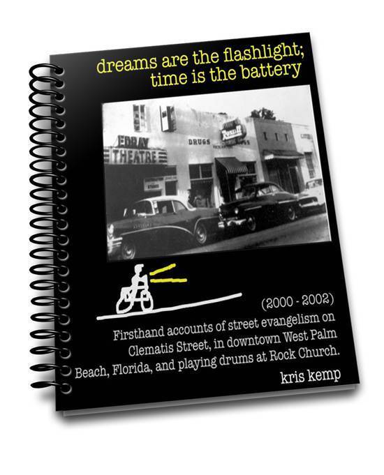 My journal from 2000 - 2002. Firsthand accounts of street evangelism on Clematis Street, ind downtown West Palm Beach, Florida, and playing drums at Rock Church.